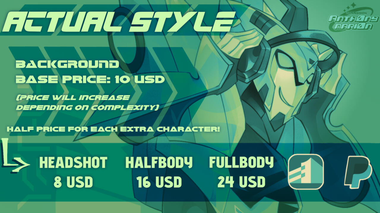 You should send references of what you want (outfit, pose, etc) Please send clear references of your character!